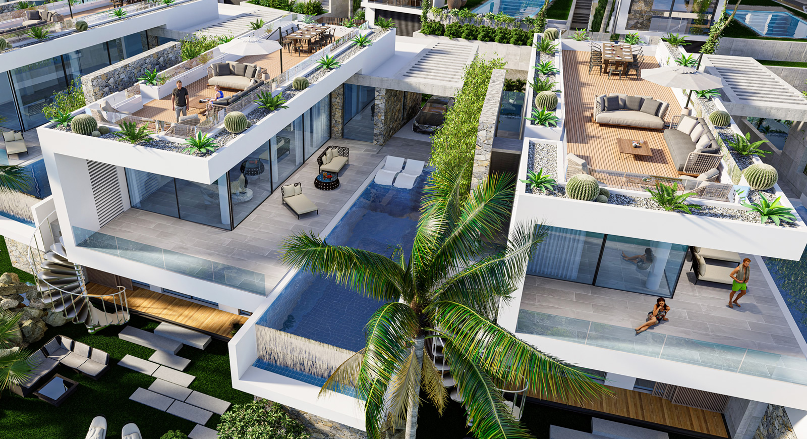 Natulux projesi, Küçük Erenköy’de, denize dalmış gibi görünen bir arsa üzerinde, görkemli bir uçurumun kenarında, 270 derecelik muhteşem bir panoramik manzara sunuyor. Burası sizi ilk adımlardan itibaren okyanusun içine çekiyor ve sizi rakipsiz bir derin mavi duygusuyla çevreliyor. Proje, kayalık bir uçurumun kenarına tünemiş 8 özel villadan oluşmaktadır. Bu noktadan itibaren denizle birleşiyor gibi görünerek sonsuz bir sahil şeridi yanılsaması yaratıyorlar. Villaların mimarisi, engebeli araziyi ustaca kullanmasıyla dikkat çekiyor. Villalar, çevredeki manzara ile uyum sağlayacak şekilde çeşitli seviyelerde inşa edilmiştir.